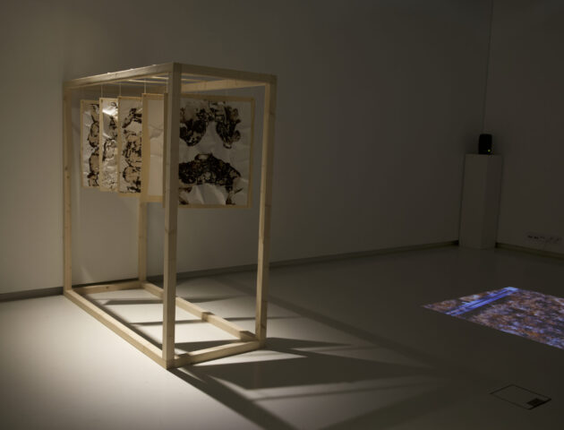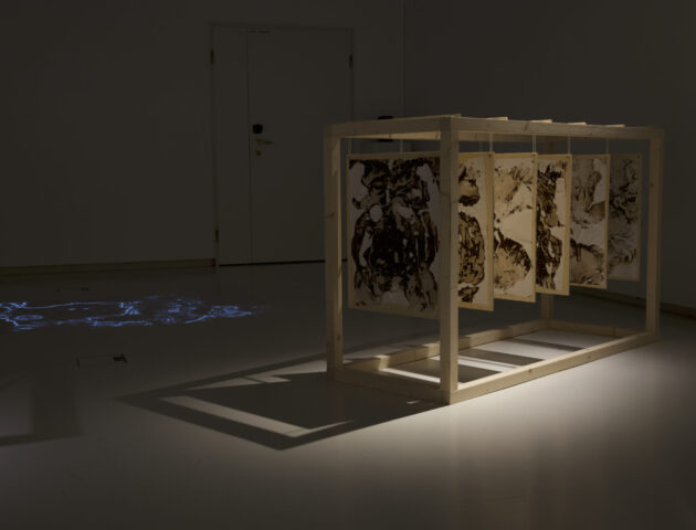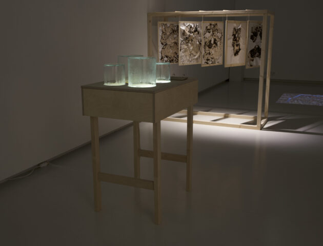 The work is a part of Mari Keski-Korsu’s artistic doctoral research, which investigates the role of more-than-human rituals and the changes within them during polycrisis. Part of the installation was exhibited in Gifts/Presents/Presence – Meanings and materialities in Cable Factory, Helsinki, Finland and then, in Hanaholmen Swedish-Finnish Culture Centre, Espoo, Finland in exhibition called Walks in the Steam of Cryosphere 13.9.-27.10.2024. This exhibition was supported by Finnish Heritage Agency and Aalto University. Thank you to Hanaholmen curator Aino Kostiainen.