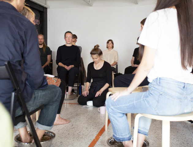 As a part of Rehearsing Hospitalities -event in Museum of Impossible Forms, Helsinki I facilitated an English version of Akatupakilla called Holding Space with Yarrow. Holding Space with Yarrow is a participatory and performative session that engages with yarrow through foot baths, hydrobodies and meditation. Yarrow is one of the oldest plant remedies used as a cure for many different ills, as its numerous names remind us. Yet what may this powerful plant, which many consider merely a weed, mean for us today? How could its voice be heard in human communities?