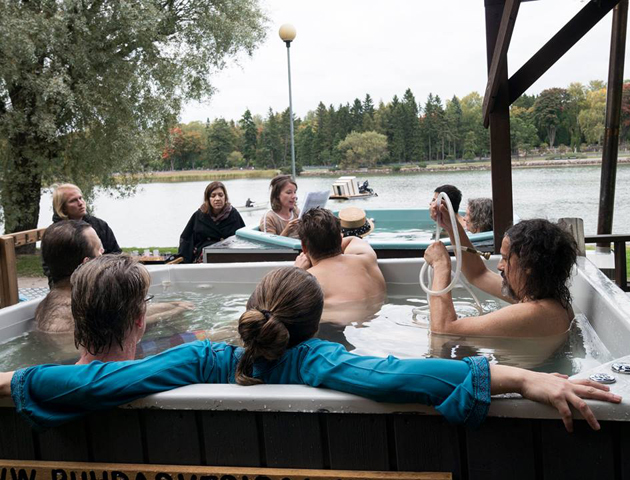 The festival programme consisted of participatory projects, workshops, installations, presentations and discussions. Most of the programme and events had some kind of bodily dimension in them. For example, Machine to Be Another -project enabled people to swop bodies and see through another’s eyes and a seminar about cellular empathy happened in hot-tubs in a ritualistic form. In the many workshops, the participants learned to work with their dreams, to communicate with other species, to design technology for the urban animals, to sing with the landscape among other experiments.